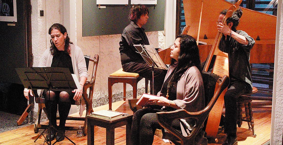Los amantes de la música clásica arribaron al Museo Güelu para gozar de un extraordinario viaje al pasado, en el que Athena Fénix dio lectura a textos del dramaturgo, poeta y actor inglés William Shakespeare, así como del novelista y soldado español Miguel de Cervantes, mientras la música del clavecín, interpretado por Pablo Espino y, el violone, por Luis Ticó, armonizaban cada estrofa.