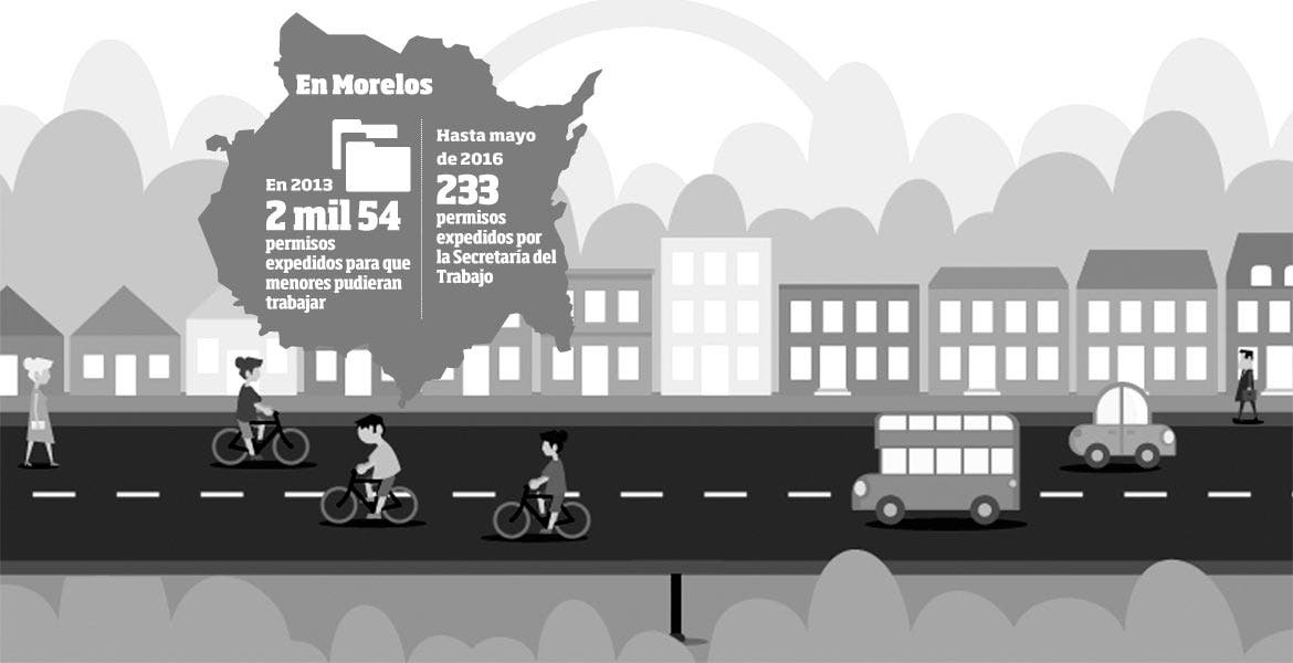 De acuerdo a las estadísticas en Morelos sobre trabajo infantil, en el año 2013 la Secretaría del Trabajo expidió dos mil 54 permisos para que menores pudieran trabajar, y hasta mayo de 2016, ha expedido 233, por lo que se espera que a final de este año, menos de mil niños estén trabajando.