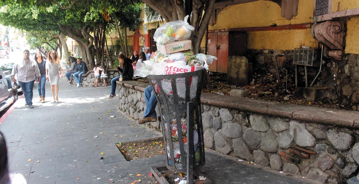 Afuera de la escuela "Benito Juárez", en calle Nezahualcóyotl, existe aún un depósito de basura, aunque en el resto de la ciudad desaparecieron. Aquí los peatones y vecindario depositan los desechos donde deben.