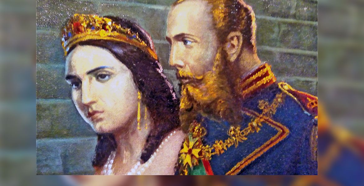 Maximiliano y Carlota, detalle de pintura de Salvador Tarazona, “Maximiliano en Cuernavaca” 1939.