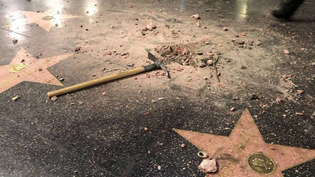 Por segunda vez en tres años, la estrella de Donald Trump en Hollywood ha sido pulverizada con un pico. Un individuo llegó este miércoles de madrugada al Paseo de la Fama y comenzó a golpear la estrella del presidente de EE UU hasta hacerla añicos.