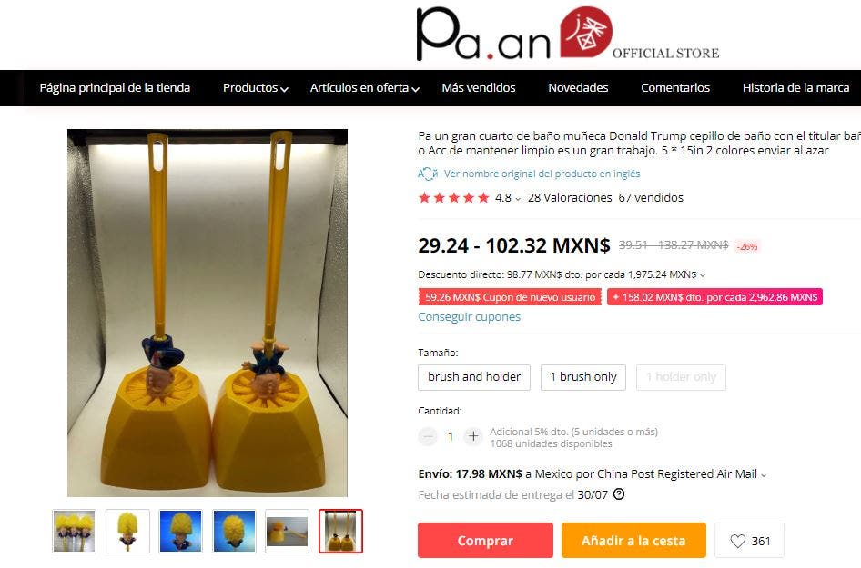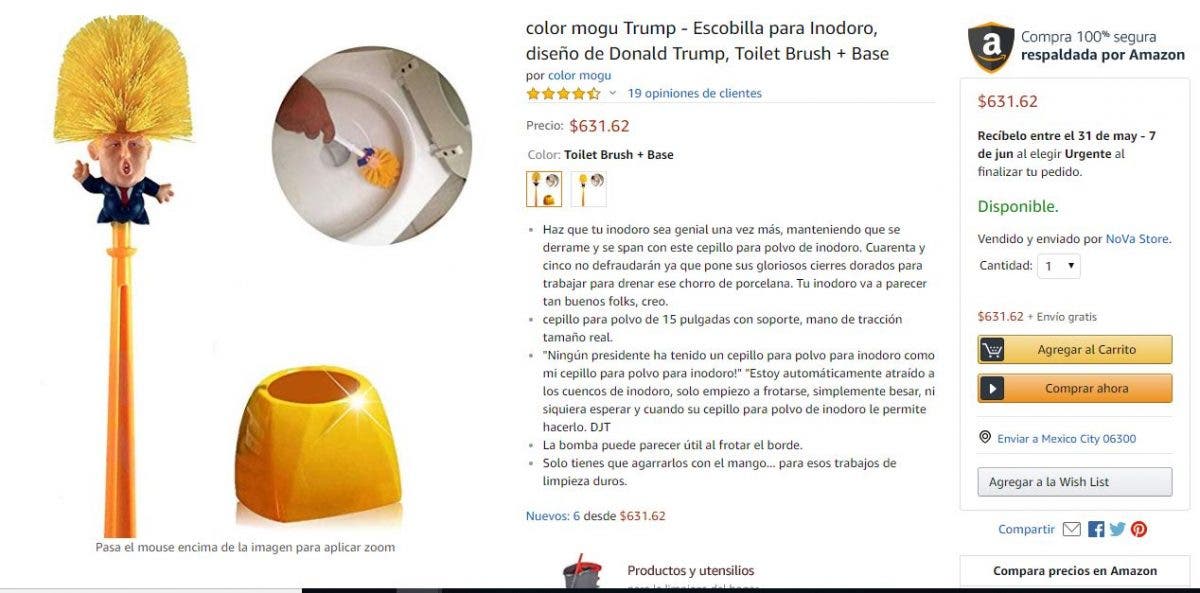 Sin embargo, los cepillos con la cara de Trump y su trajecito azul se han vuelto tan populares que ya se venden en Amazon a más de 600 pesos.