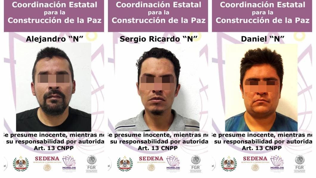 En las acciones operativas se logró el aseguramiento de los presuntos autores del delito de secuestro agravado, identificados como Alejandro “N” de 38 años de edad, Daniel “N” de 26 años y Sergio Ricardo “N” de 36 años de edad, éste último cuenta con registro criminal; en el año 2009 estuvo recluido en el Centro de Reinserción Social “Morelos” por el delito de robo, en 2010 fue detenido por fumar marihuana, en el 2012 detenido por alteración al orden y en el mismo año por lesiones, ultrajes a la autoridad y resistencia de particulares.
