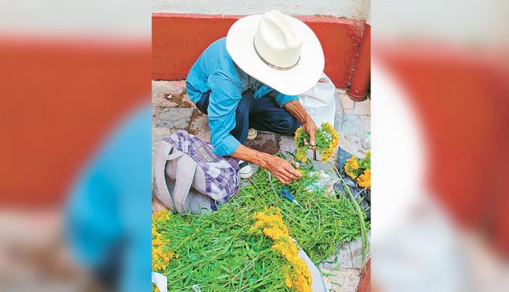 Aparte, en la iglesia de Tepetates, Pedro Doroteo y su hijo Jesús, con su pequeña hija, oriundos del pueblo de Tlamacazapa, Taxco, llegan para vender el pericón que recogieron temprano para traerlo a Cuernavaca, y ofrecerlo en cruces de 15 pesos o 10 el ramillete.