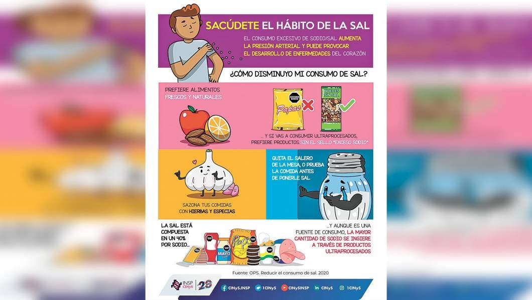 Además, dijo que para reducir el consumo de la sal en la población es necesario disminuirla gradualmente desde los alimentos que consumimos ya elaborados.