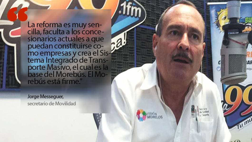 "La Reforma es muy sencilla, faculta a los concesionarios actuales a que puedan constituirse como empresas y crea el Sistema Integrado de Transporte Masivo, el cual es la base del Morebús. El Morebús está firme, se hará", dijo Jorge Messeguer.