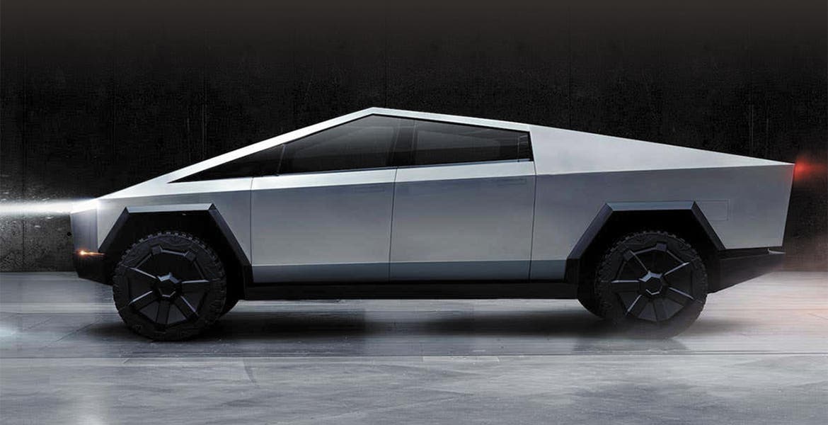 Tiene una autonomía de hasta 805 kilómetros, tiene proporciones insólitas para un pickup y líneas rectas y afiladas, la Cybertruck realmente rompe el molde de una camioneta.