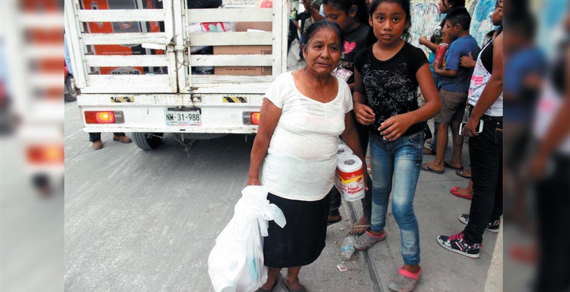 Entrega. Los víveres fueron entregados directamente a las personas que sufrieron daños por el sismo.