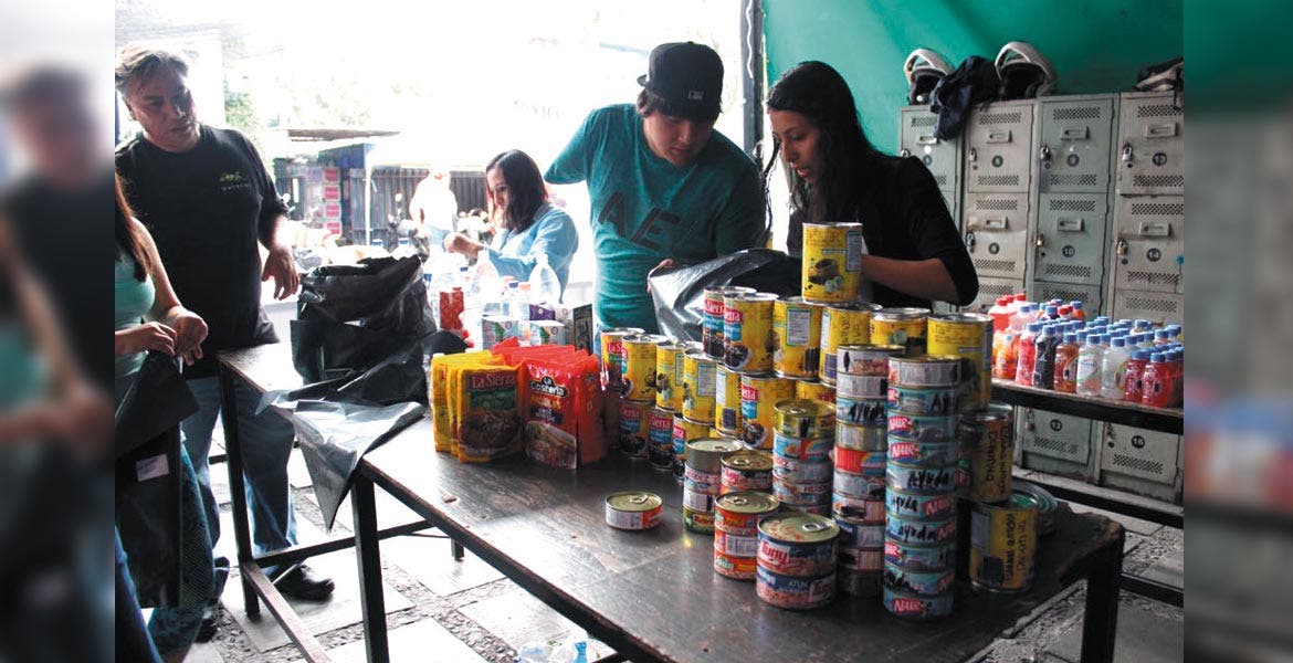 Acomodo. Voluntarios empaquetaron los víveres para enviarlos a sus destinos finales.