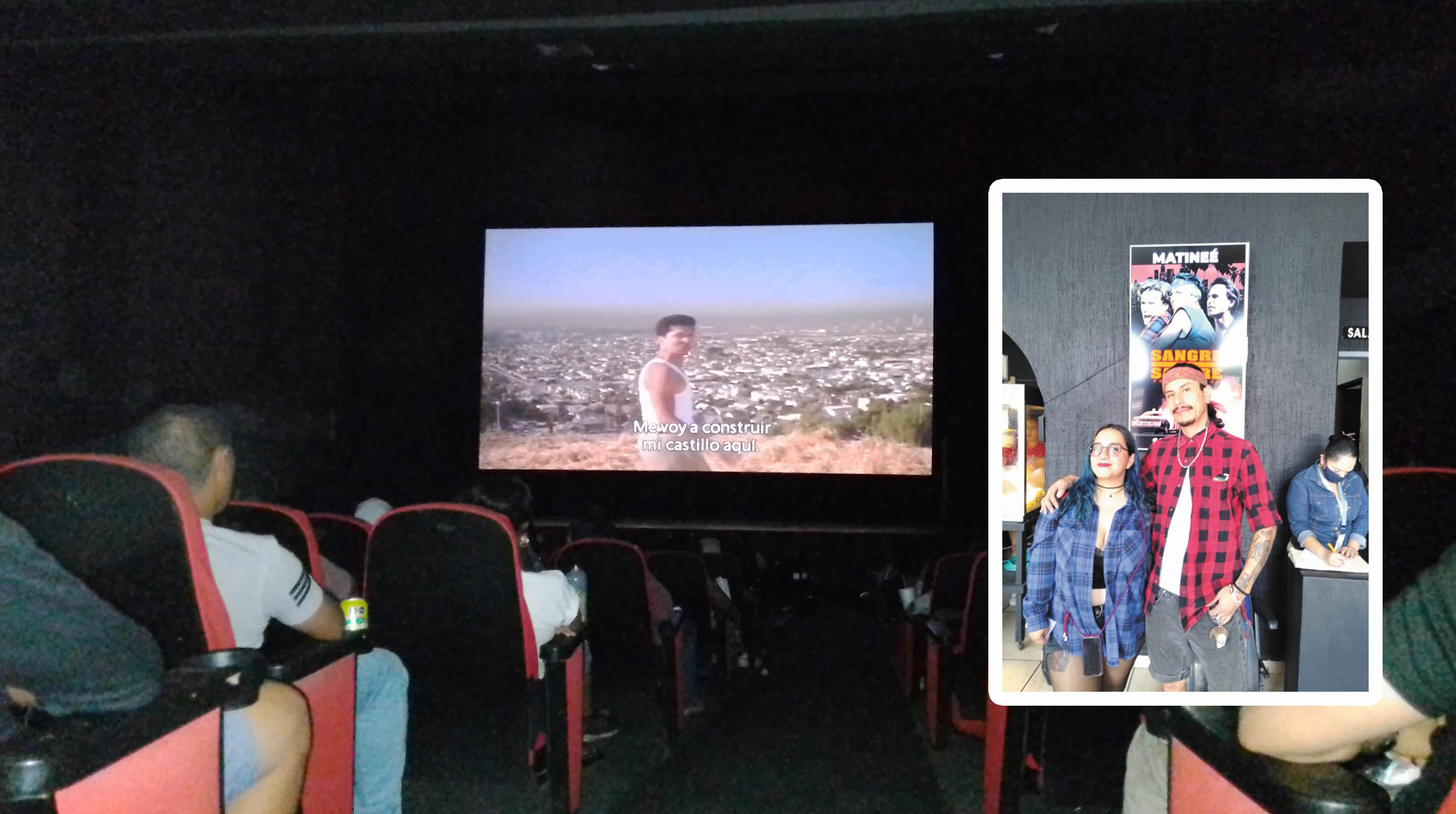 La película inició al mediodía, sin embargo, la gente comenzó a llegar media hora antes, con paliacates en la cabeza, vestimentas de “cholos chicanos” y con playeras referente a Sangre por Sangre llenaron la sala antes de iniciar con la proyección.