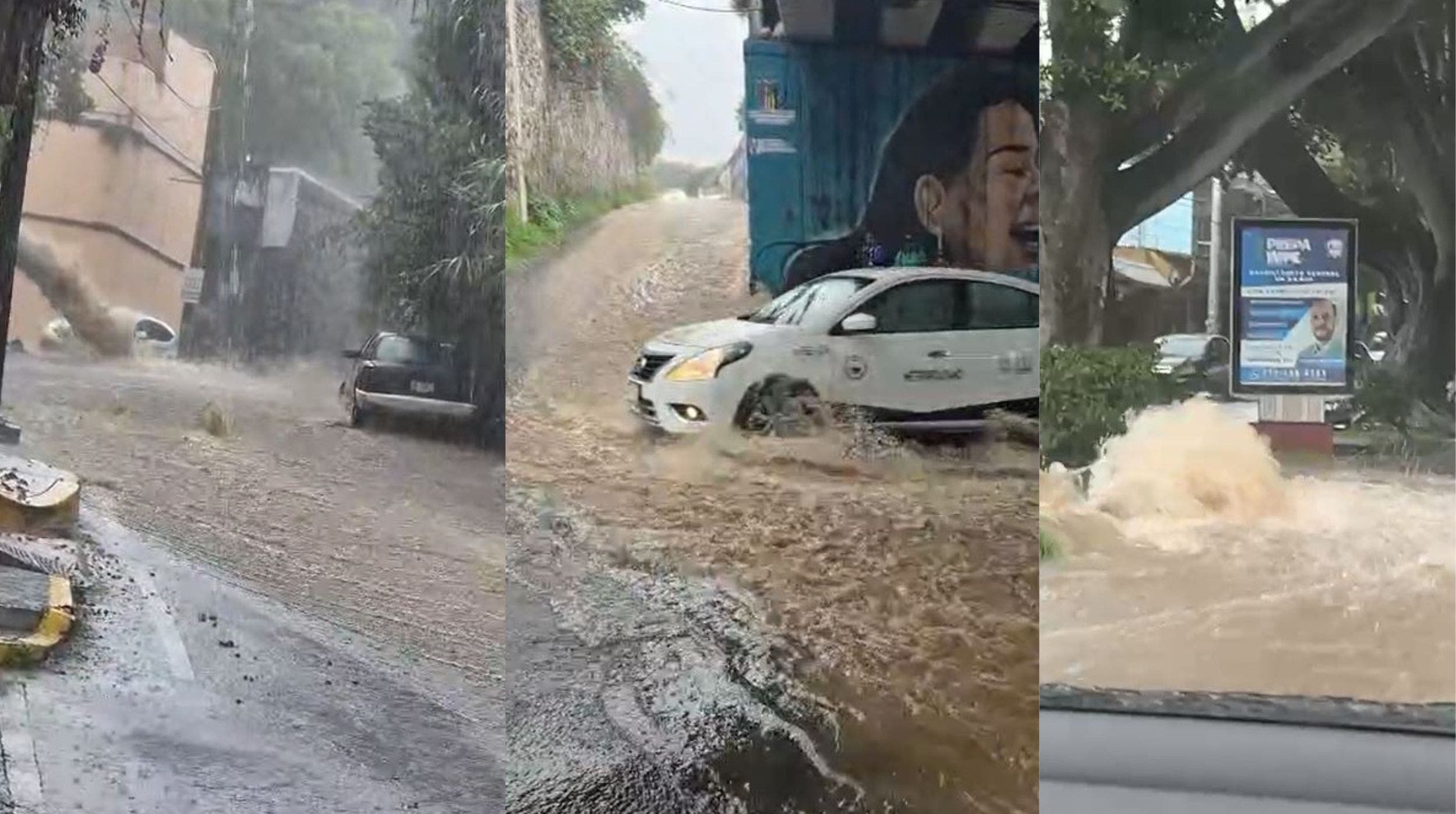 En redes sociales, como X (anteriormente Twitter), usuarios compartieron imágenes y videos en tiempo real que viralizaron la crisis: desde tormentas eléctricas sobre el cerro del Ajusco hasta autos flotando en Avenida Universidad.