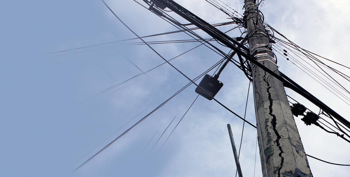 Al paso de los años, los postes también se van deteriorando y algunos, como éste en calle Leandro Valle, lo sostienen los cables.