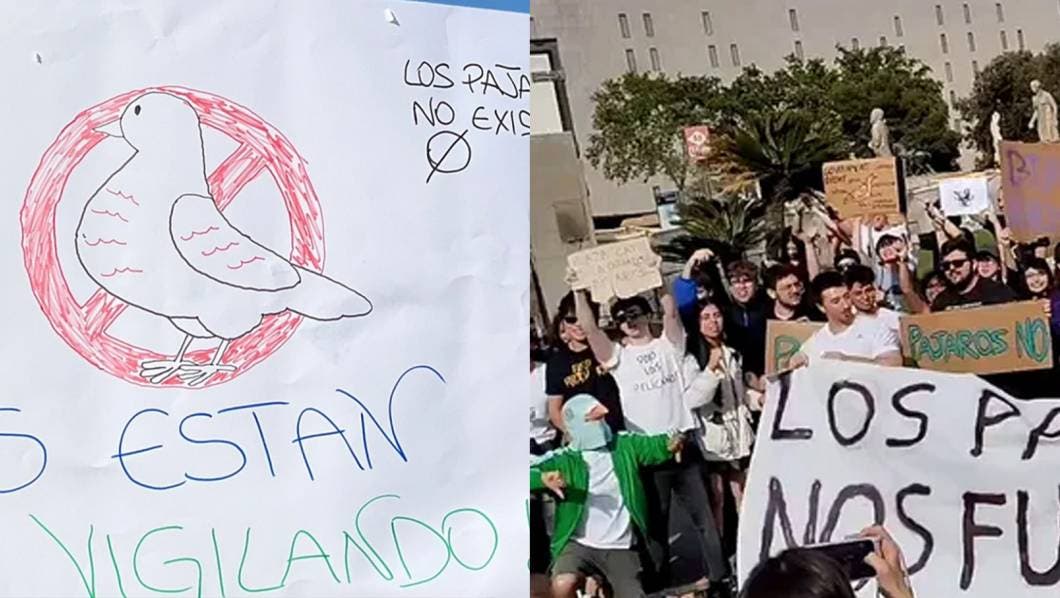 En una inusual protesta en la Plaza de Catalunya, Barcelona, un grupo autodenominado "Movimiento Anti Pajarista Internacional" expresó su inconformidad y teorías de conspiración respecto a las aves, a las que consideran drones encargados de espiar y fumigar a la población con estrógenos.