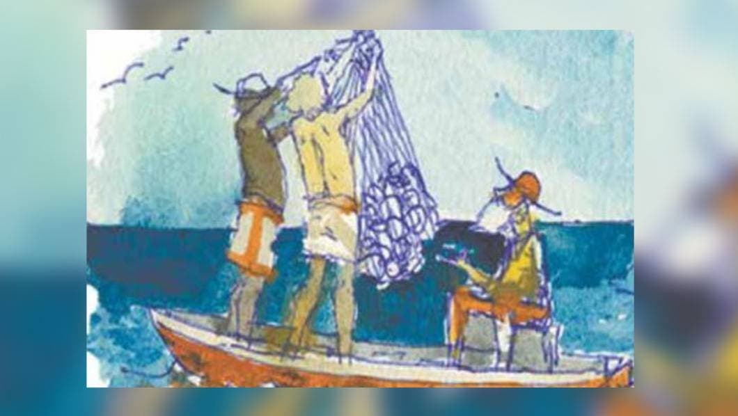 Uno de los pescadores, el más viejo, dijo a sus compañeros: - Basta de afligirse, muchachos, puesto que según parece la alegría tiene por hermana la tristeza; después de habernos alegrado tanto antes de tiempo, era natural que tropezásemos con alguna contrariedad.