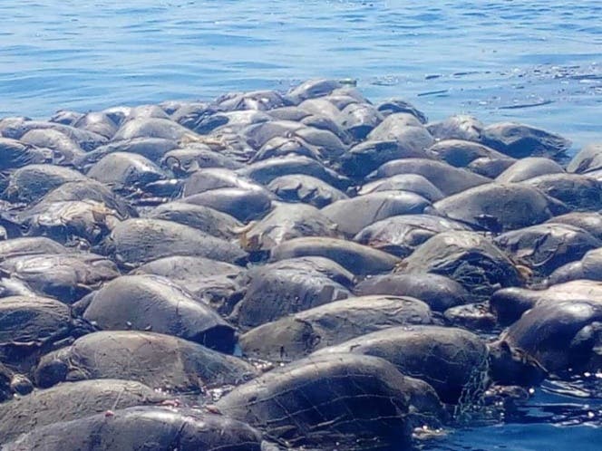 Más de un centenar de tortugas murieron al quedar atrapadas en redes colocadas en la víspera por pescadores de atún frente a la barra de Navidad, del municipio de Santa María Colotepec, en la región de la Costa, Oaxaca.