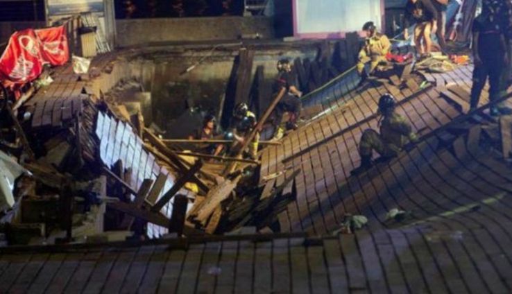 Al quebrarse el muelle, de unos 30 metros de largo y 10 de ancho, las personas cayeron amontonándose unas sobre otras, mientras otros acabaron en el agua, generando momentos de pánico.