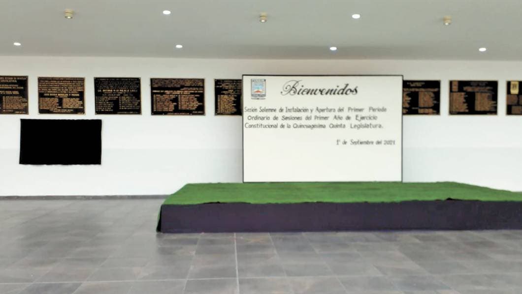 Listos. En el Congreso local ya cuentan con la mampara de bienvenida para la LV Legislatura.