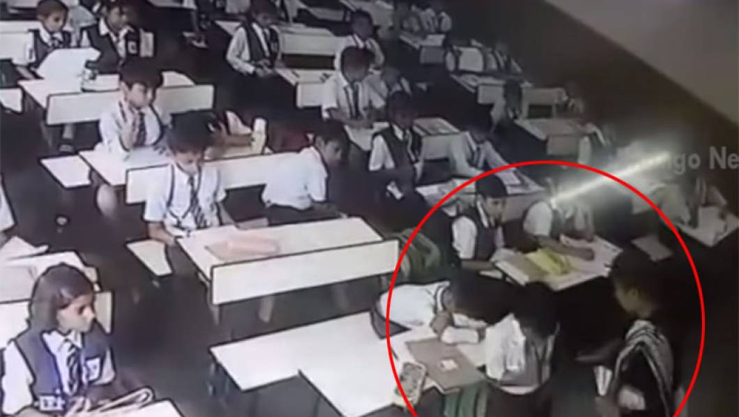 Los alumnos observaron el correctivo que aplicó la maestra, mientras el pequeño Ritesh se tambaleaba tras cada golpe… la escena, incluso muestra, a la agresora detenerse unos segundos para gritar y vuelve a tundir al educando.