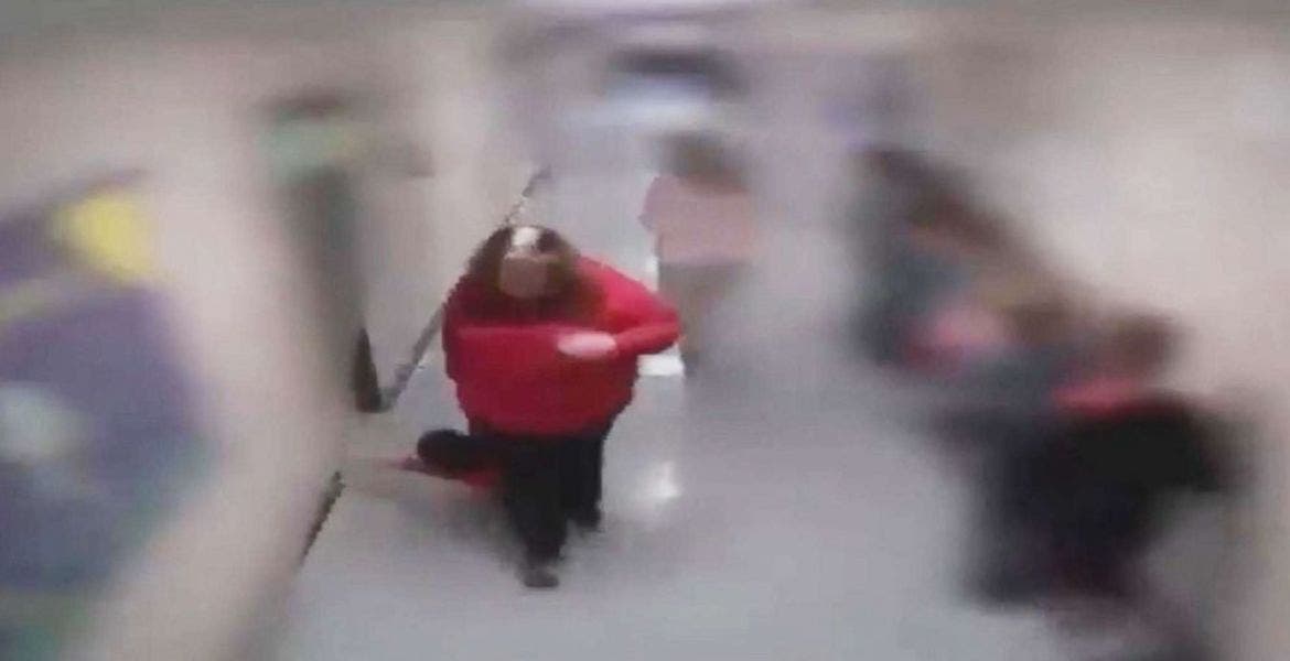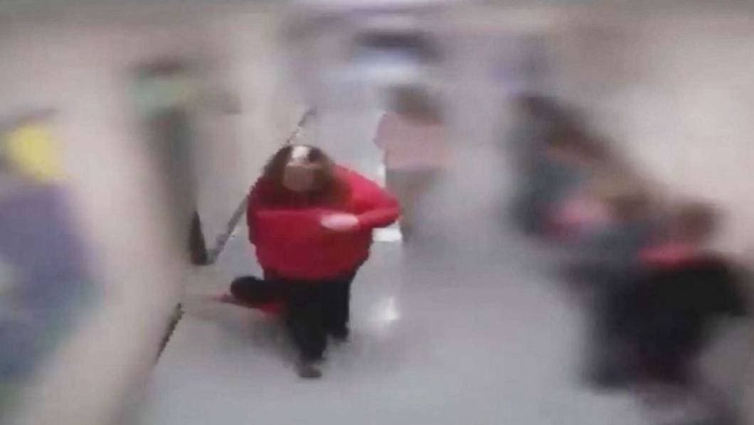 En el video, una mujer identificada como Tina Abrams aparece arrastrando a Alan Jackson, un estudiante de 9 años de edad diagnosticado con autismo, junto a una fila de estudiantes en un pasillo.