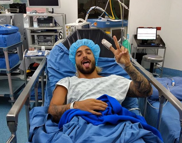 Seguramente en las próximas horas sabremos por qué se lo vio a Maluma acostado en una camilla de hospital.
