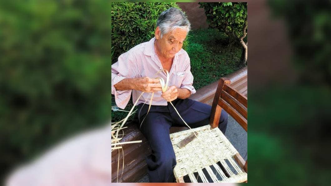 Labor a mano. Don Felipe destaca que se ha perdido el arte de forrar sillas con palma, pues asegura que la gente prefiere muebles de plástico.