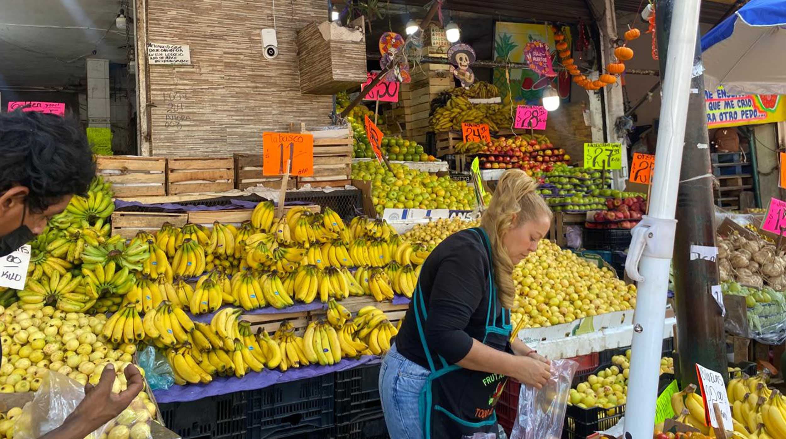 Según locatarios del área de carnes, el precio de la costilla y el bistec de cerdo subió de 120 a 124 pesos por kilo. También señalaron que productos para preparar tamales, como la manteca y la maciza de cerdo, tienen una gran demanda por las festividades del Día de Muertos. En el caso de las frutas, el plátano macho aumentó dos pesos y se ubica entre 26 y 30 pesos por kilo, mientras que el camote mostró un incremento similar.