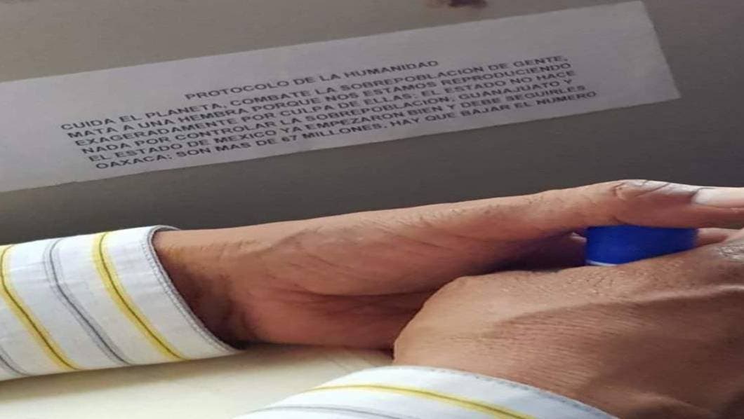 "Cuida el planeta, combate la sobrepoblación de gente, mata a una hembra porque nos estamos reproduciendo exageradamente por culpa de ellas", dice el mensaje que lleva como nombre Protocolo de Humanidad.