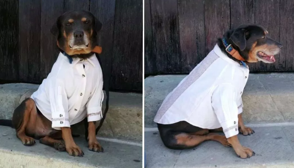 El presidente municipal de San Pablo Villa de Mitla, Abelardo Ruiz Acevedo, compartió a través de Facebook las imágenes del simpático can vistiendo una elegante guayabera, elaborada en este pueblo mágico.