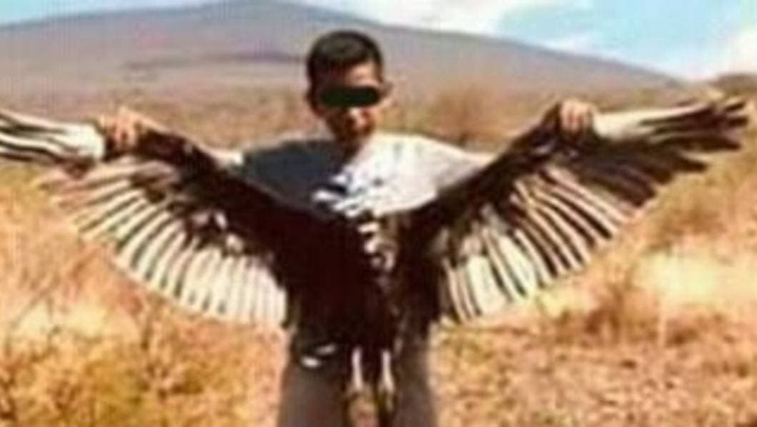 Publicaron dos fotografías en sus cuentas de Facebook en las que exhibían el ave sin vida con las alas extendidas.