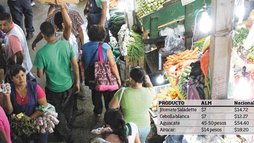 Sólo por poner un ejemplo, dijo, el jitomate saladette, el más consumido por las amas de casa, de acuerdo con los precios promedio a nivel nacional, llega a costar hasta 15 pesos el kilo; en el ALM lo pueden obtener a 7 pesos y a 10 como el límite mayor.