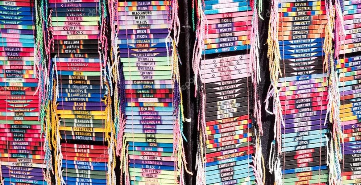 A diferencia de México, donde esas pulseras tienen un costo de entre 10 y 20 pesos, en ese lugar de alto flujo de turistas, a unos cuantos metros del famoso Teatro Chino, tienen un precio de siete dólares (alrededor de 140 pesos). Entre la lista se encuentran nombres comoMorgan, Nathalie, Melanie o Rachel.