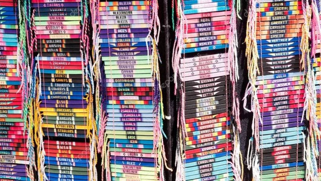 A diferencia de México, donde esas pulseras tienen un costo de entre 10 y 20 pesos, en ese lugar de alto flujo de turistas, a unos cuantos metros del famoso Teatro Chino, tienen un precio de siete dólares (alrededor de 140 pesos). Entre la lista se encuentran nombres comoMorgan, Nathalie, Melanie o Rachel.