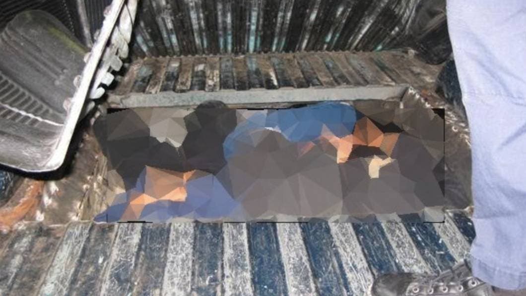 Al momento de los detención, señaló que nadie más estaba con él, sin embargo, al realizar la inspección revisaron un pequeño armario detrás del asiento del conductor, encontraron a un mexicano escondido dentro.