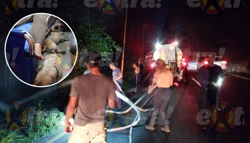 En medio del silencio de la noche, los rescatistas escucharon gritos desesperados de auxilio que provenían de la maleza, a la orilla de la carretera. Al inspeccionar la zona con lámparas, localizaron a la conductora atrapada en el fondo del desfiladero junto a sus dos mascotas.