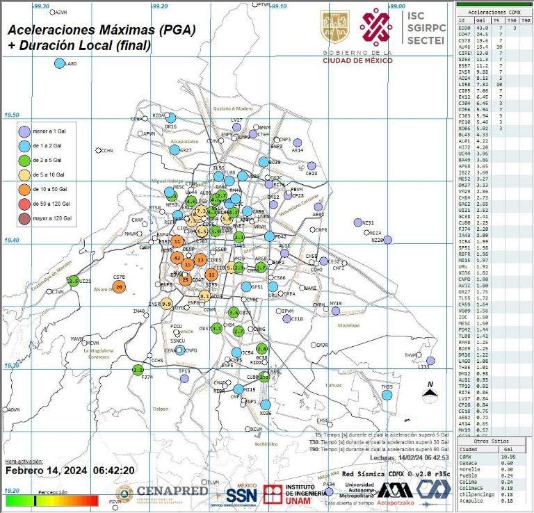 La Red Sísmica de la CDMX difundió una serie de mapas donde se pueden ver que los microsismos del dia de hoy no tuvieron la misma persepción intensidad en todas las alcaldías