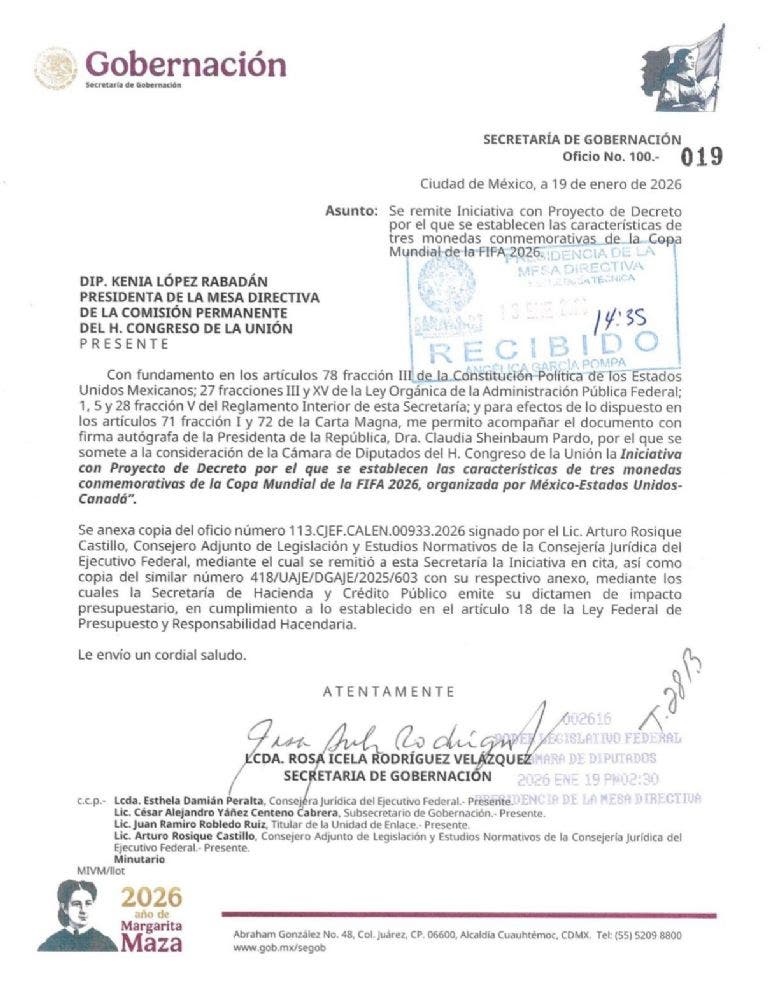 Como parte de los preparativos rumbo a la Copa Mundial de la FIFA 2026, el Congreso de la Unión analiza una propuesta para la emisión de monedas conmemorativas, iniciativa que fue enviada por la presidenta Claudia Sheinbaum.