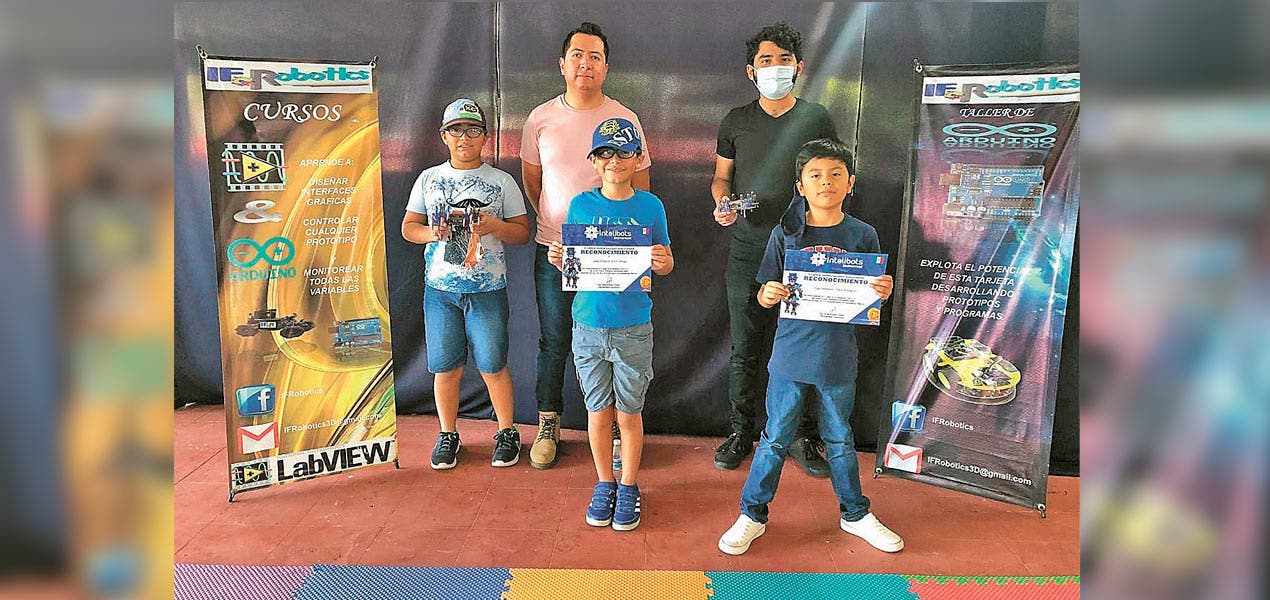 Hugo Sebastián Tijera Rodríguez, y los hermanos Jason Eduardo y Patricio Alexander Durón Ortega, compitieron en la categoría ‘insecto junior en Intelibots’ logrando tiempo record en la competencia.