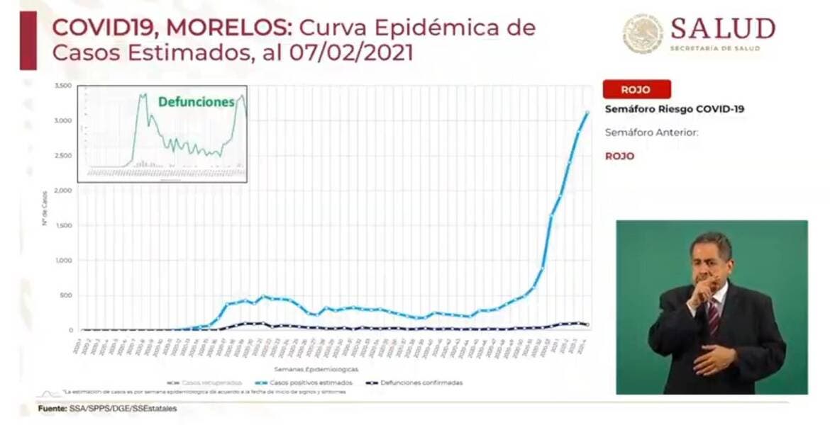 "Morelos tiene una tendencia preocupante al alza en el número de contagios de COVID19, ha sido una tendencia de casi 8 semanas de ascenso que preocupa mucho porque, aunque es un estado pequeño, tiene una muy limitada capacidad hospitalaria y puede haber saturación", dijo Hugo López Gatell, subsecretario de Prevención de la Salud, durante la mañanera.