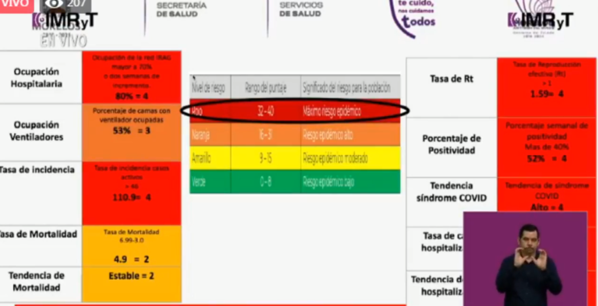 Lo anterior, luego de que 7 de 10 indicadores que se utilizan para determinar el semáfor están en color rojo.