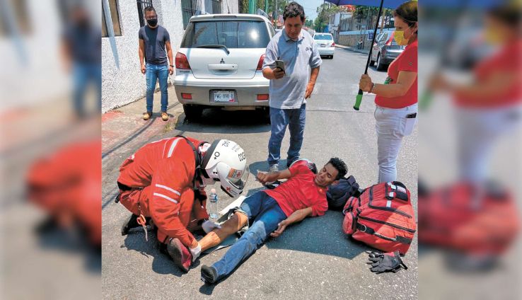 Cuernavaca.- Con una pierna lesionada resultó un motociclista tras impactarse contra la puerta de un vehículo en la colonia Las Palmas de Cuernavaca.
