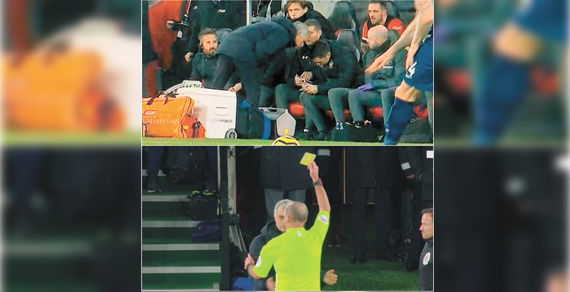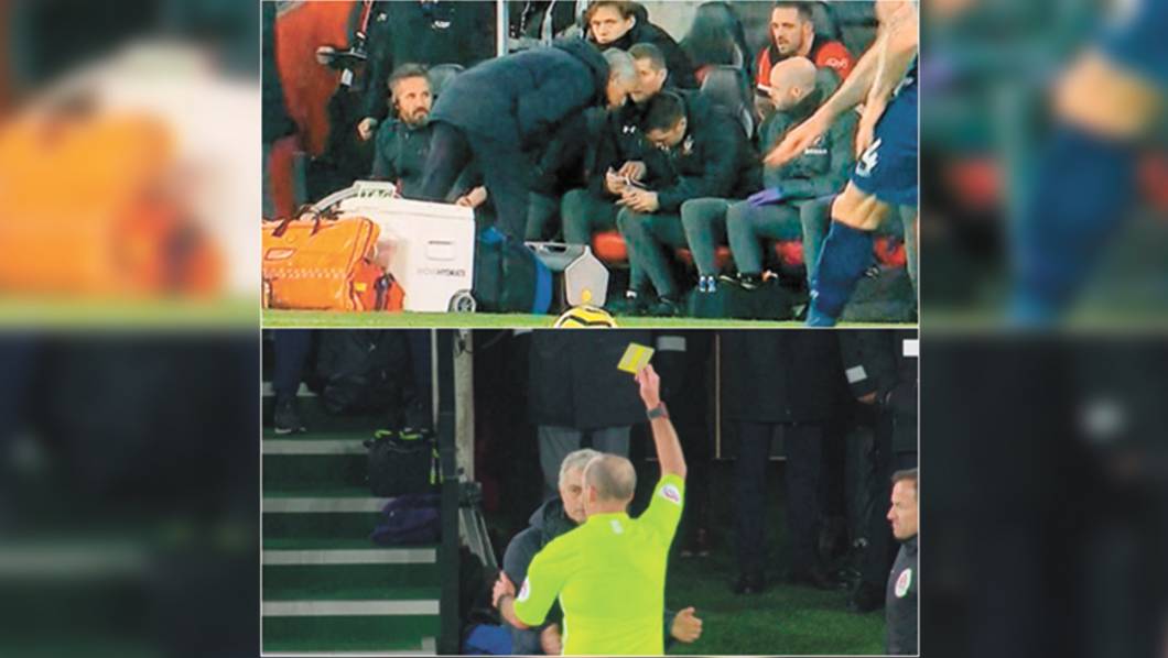 La imagen de Mourinho en la banca rival se volvió viral en las redes sociales, en las que se ve que Hasenhuttl, estratega del Southampton, escribe en su cuaderno, cuando aparece el luso para asomarse y revisar los apuntes, situación que le costó una tarjeta amarilla.
