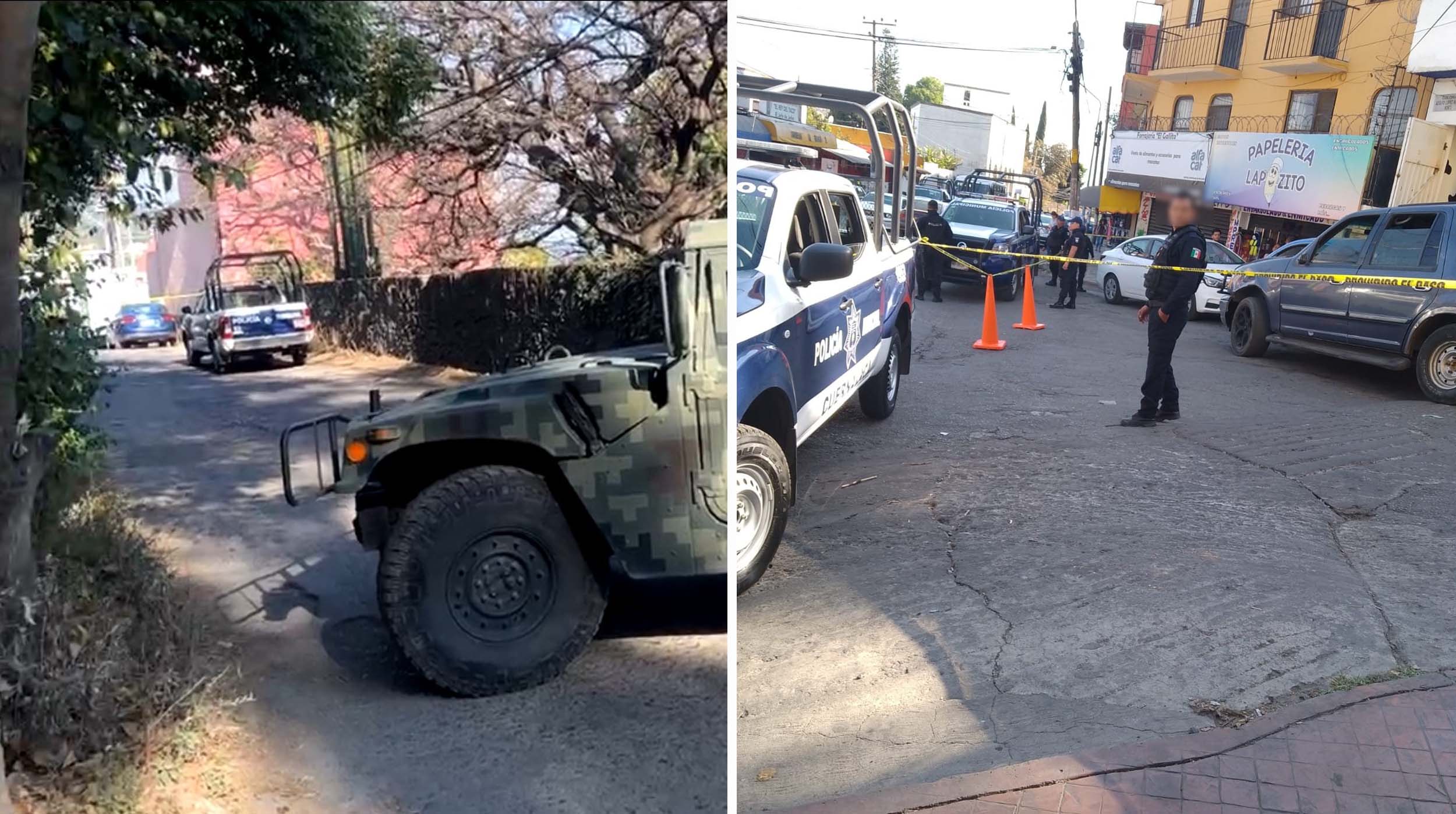 la zona fue asegurada por elementos policiales, así como personas del Ejército Mexicano, además al lugar arribaron peritos del Servicio Médico Forense para realizar las diligencias correspondientes.