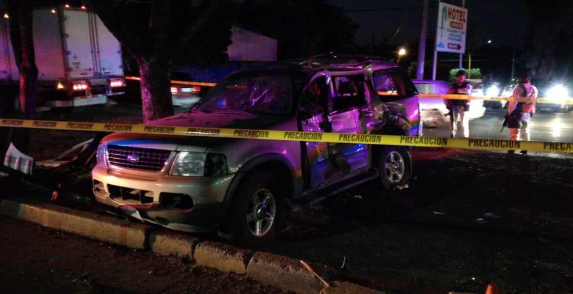 La camioneta fue arrastrada algunos metros, hasta quedar sobre un camellón y un árbol.