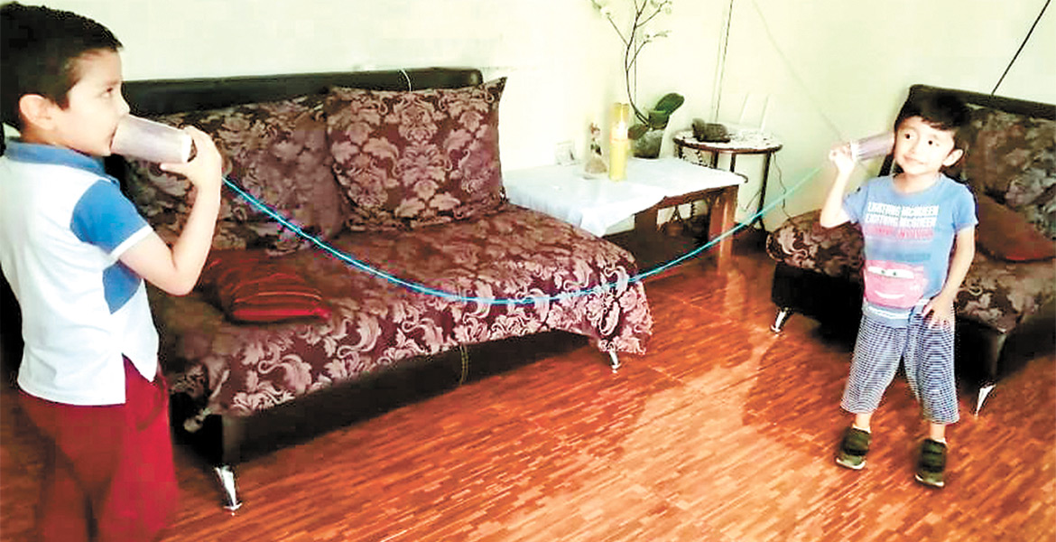 Práctica. Los menores utilizaron artículos como vasos de plástico y estambre, para crear sus propios teléfonos y ponerlos a prueba.