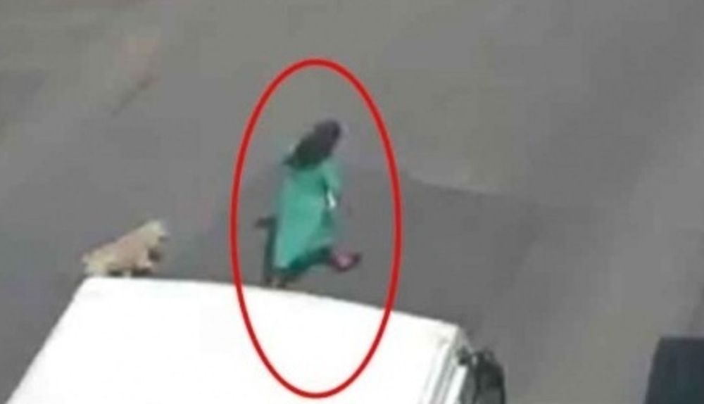 Incluso, se observa que un perro blanco, que la acompañaba, se espera a que pase el microbús y luego continua su camino hasta cruzar la calle.