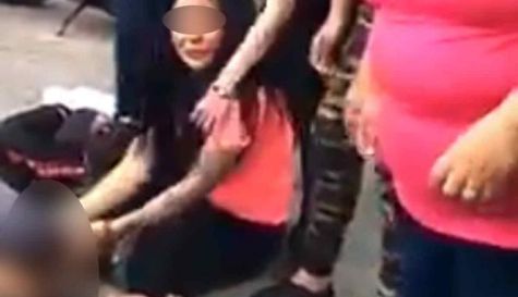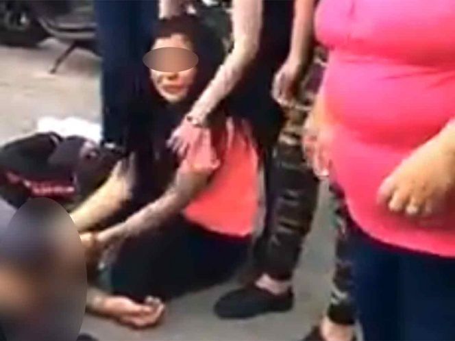 La mujer está rodeada de otras mujeres que intentan retirarla del lugar, a la vista de otros testigos.