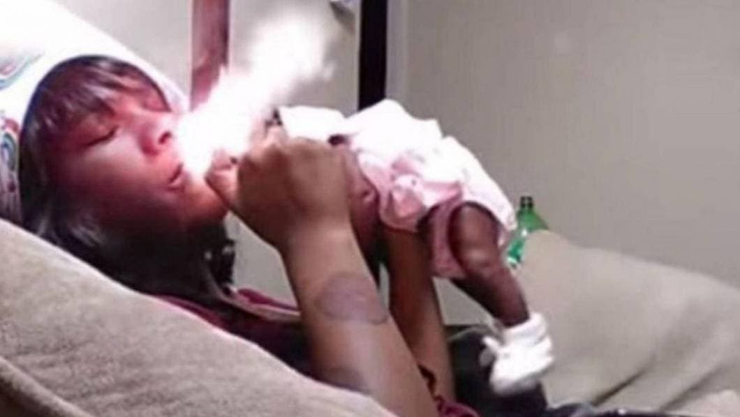 Estados Unidos.- Una mujer publicó en sus redes el desagradable momento que maltrataba a su bebé de apenas unos días de nacida, mientras fumaba recostada en una cama.