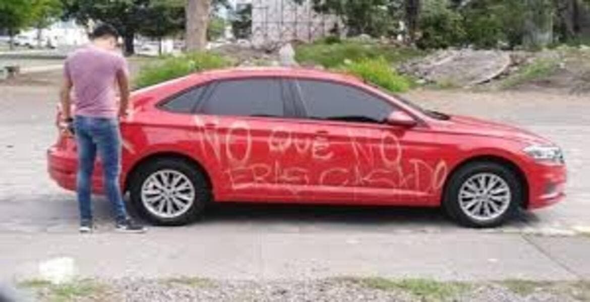 Una mujer se molestó luego de que supuestamente descubrió que el sujeto con la que tenía una relación, le había mentido sobre su estado civil, resulta que al hombre al que le había entregado su amor estaba casado, por lo que decidió vengarse de él. La mujer llamada Daniela, le rayó el auto, le escribió "¿No que no eras casado?".