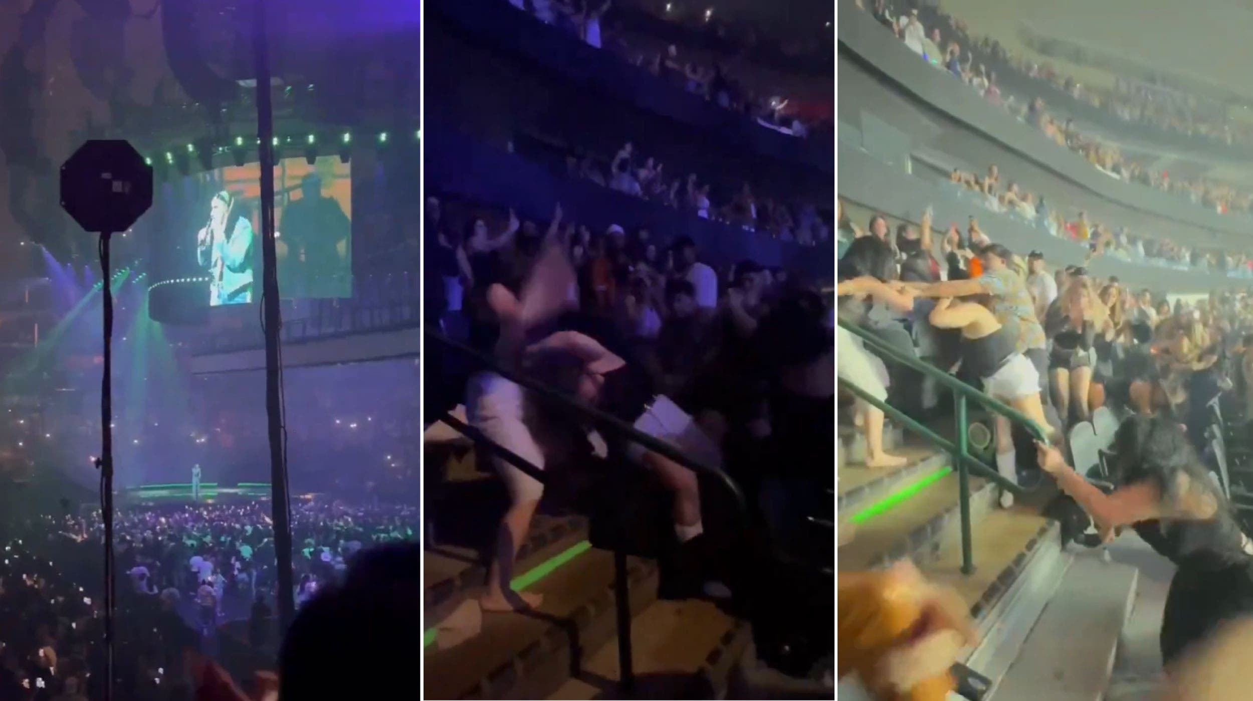 A mitad de su presentación estalló una pelea en las gradas entre varias mujeres. De acuerdo con algunos asistentes, la pelea inició con puñetazos, tirones de pelo y empujones, cuando de repente escaló en intensidad, atrayendo rápidamente la atención de varios asistentes.