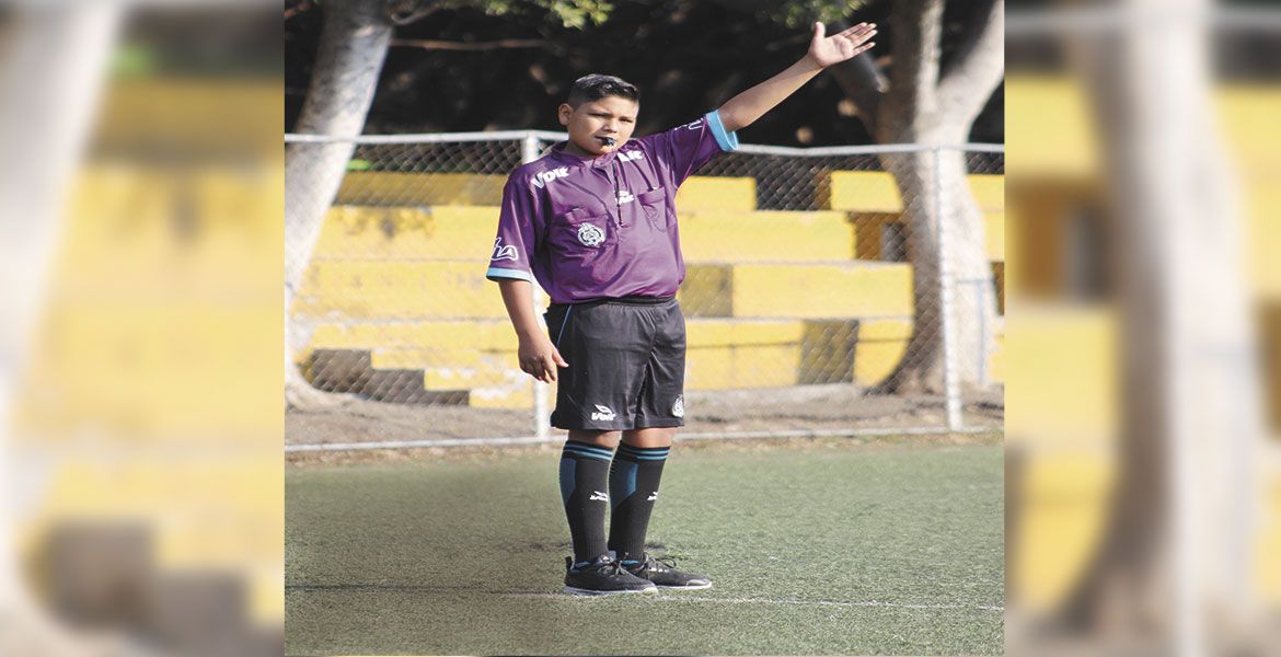Cuernavaca.- Diego Eduardo Santana Aguilar, niño de doce años de edad, imparte justicia a su corta edad, pero dentro de las canchas de futbol, pues es tal vez uno de los silbantes más jóvenes morelenses de la actualidad.